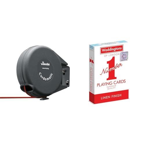Vileda Cordomatic Retractable Washing Line with 15m Outdoor Clothes Line & Waddingtons Number 1 Playing Card Game, play fish, slap jack, crazy eights and rummy