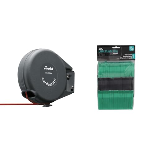 Vileda Cordomatic Retractable Washing Line with 15m Outdoor Clothes Line & JVL 48-Piece Ultra Strong Clothes Pegs