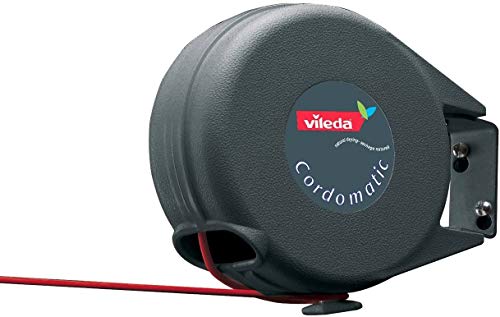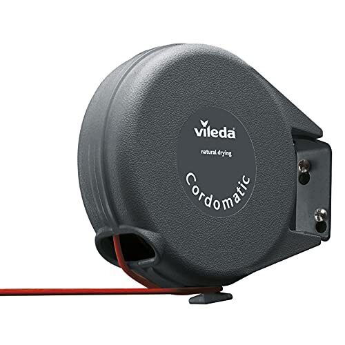 Vileda Cordomatic 15 Metre Automatic Retractable Clothes Line - Indoor outdoor Plastic washing line, Red