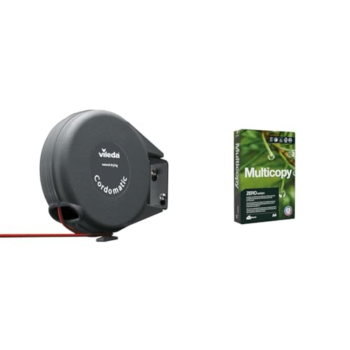Vileda Cordomatic Retractable Washing Line with 15m Outdoor Clothes Line & Multicopy Zero A4 80gsm Printer Paper - 1 Ream (500 sheets)