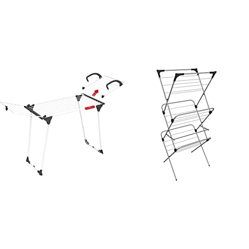 Vileda Premium 2-in-1 Indoor Airer & Sprint 3-Tier Clothes Airer, Indoor Clothes Drying Rack with 15 m Washing Line, Silver