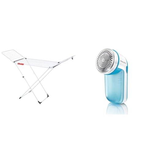 Vileda Extra X-Legs Clothes Airer, Indoor Clothes Drying Rack with 20m Washing Line, White & Philips Fabric Shaver GC026/00, Blue