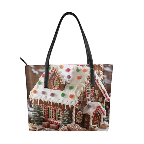JKLQWC Christmas Gingerbread Like Village House Printed Womens Shopping Tote Bag Ladies PU Leather Shoulder Handbags for Work Travel School