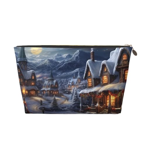 KKLWEGU Christmas Village Cosmetic Bag Pu Leather Waterproof Makeup Bag Portable Travel Toiletry Bag Organizer Gold Zipper Pouch For Women Ladies Gift, Silver, One Size