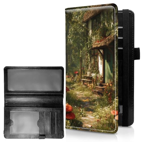 Leather Card Case Card Case Holder Cute Coin Purse RFID Blocking Zipper Card Case Wallet For ladies With KeyChain Hook, Landscape and Village, One Size