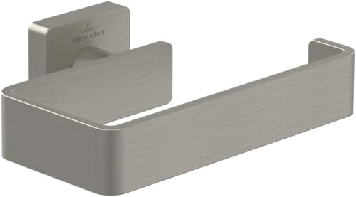 Villeroy & Boch Elements Striking Spare Toilet Paper Holder, Replacement Roll Holder Toilet Paper for Wall Mounting, Toilet Paper Storage Made of Brass, Square, Brushed Nickel Matt