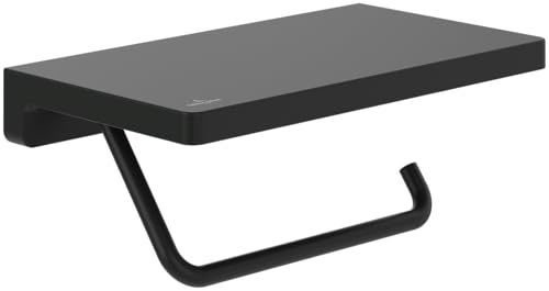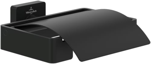 Villeroy & Boch Elements Striking Toilet Paper Holder with Shelf, Toilet Paper Holder for Wall Mounting, Brass Toilet Roll Holder, Square, Matt Black