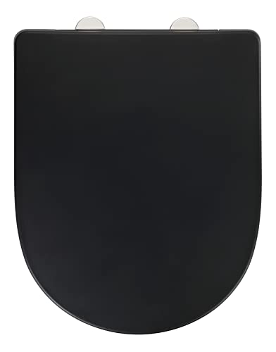 WENKO Toilet seat Exclusive No. 3, with automatic soft-closing mechanism, suitable for Villeroy & Boch O.novo and standard bathroom ceramics, made of antibacterial Duroplast, 36.5 x 45 cm, black