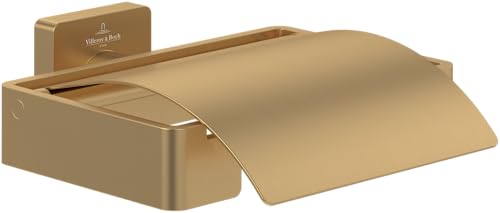 Villeroy & Boch Elements - Striking toilet roll holder with cover, for wall installation, brass, square toilet paper holder, Brushed Gold