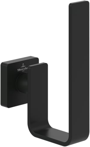 Villeroy & Boch Elements Striking Spare Toilet Paper Holder, Replacement Roll Holder Toilet Paper for Wall Mounting, Toilet Paper Storage Made of Brass, Square, Matt Black