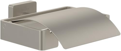 Villeroy & Boch Elements Striking Toilet Paper Holder with Lid, Toilet Paper Holder for Wall Mounting, Brass Toilet Roll Holder, Square, Brushed Nickel Matt