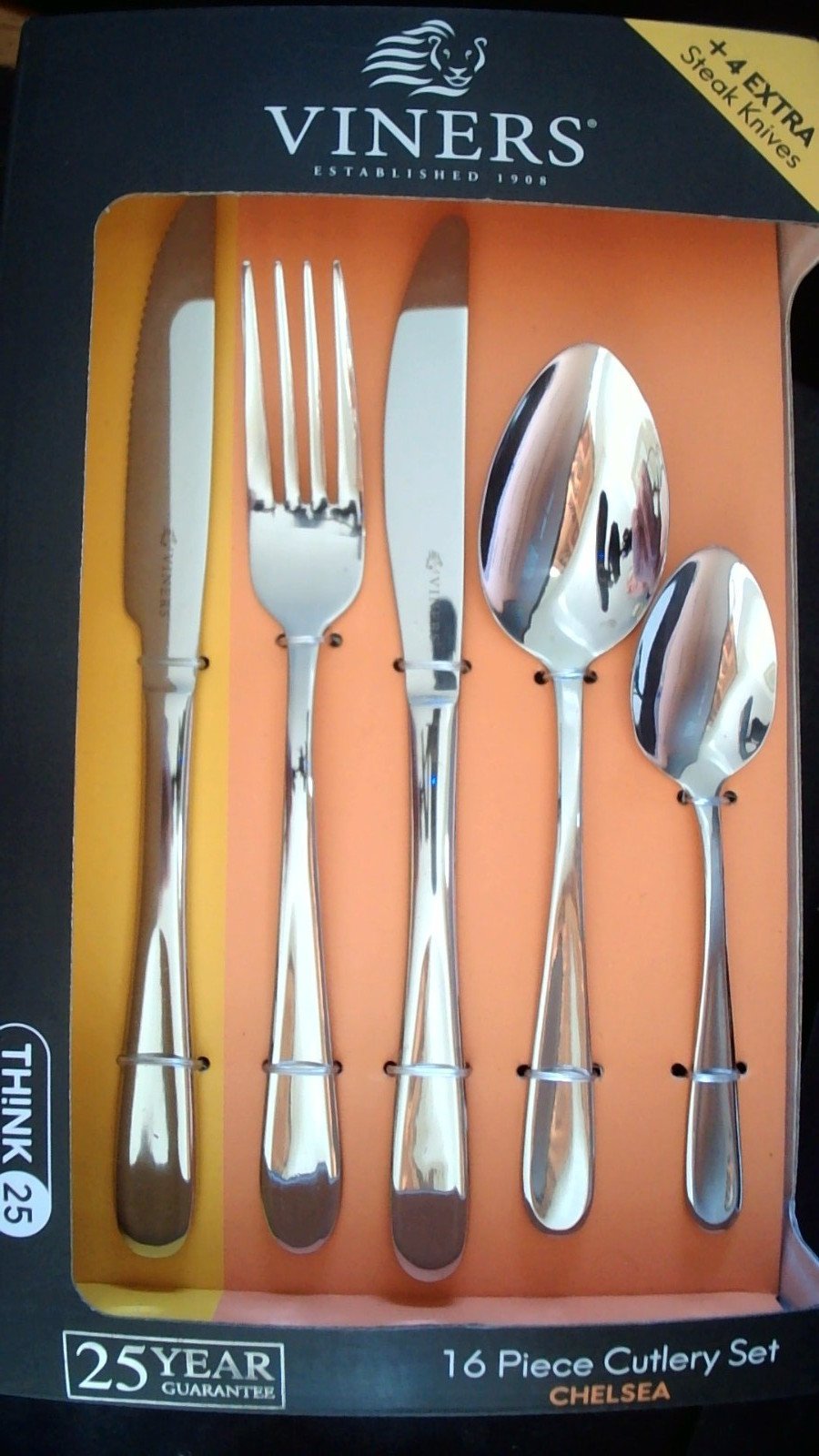 Viners Chelsea 16 Piece Cutlery Set + 4 Extra Steak (20pc). 18/0 Stainless Steel