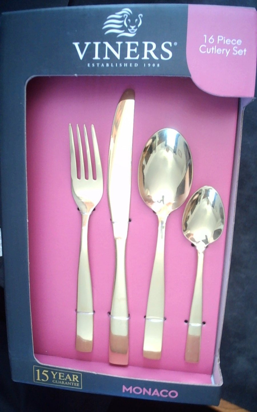 Viners Monaco 16 Piece Cutlery Set. Gold colour. 18/0 Stainless Steel.4 settings