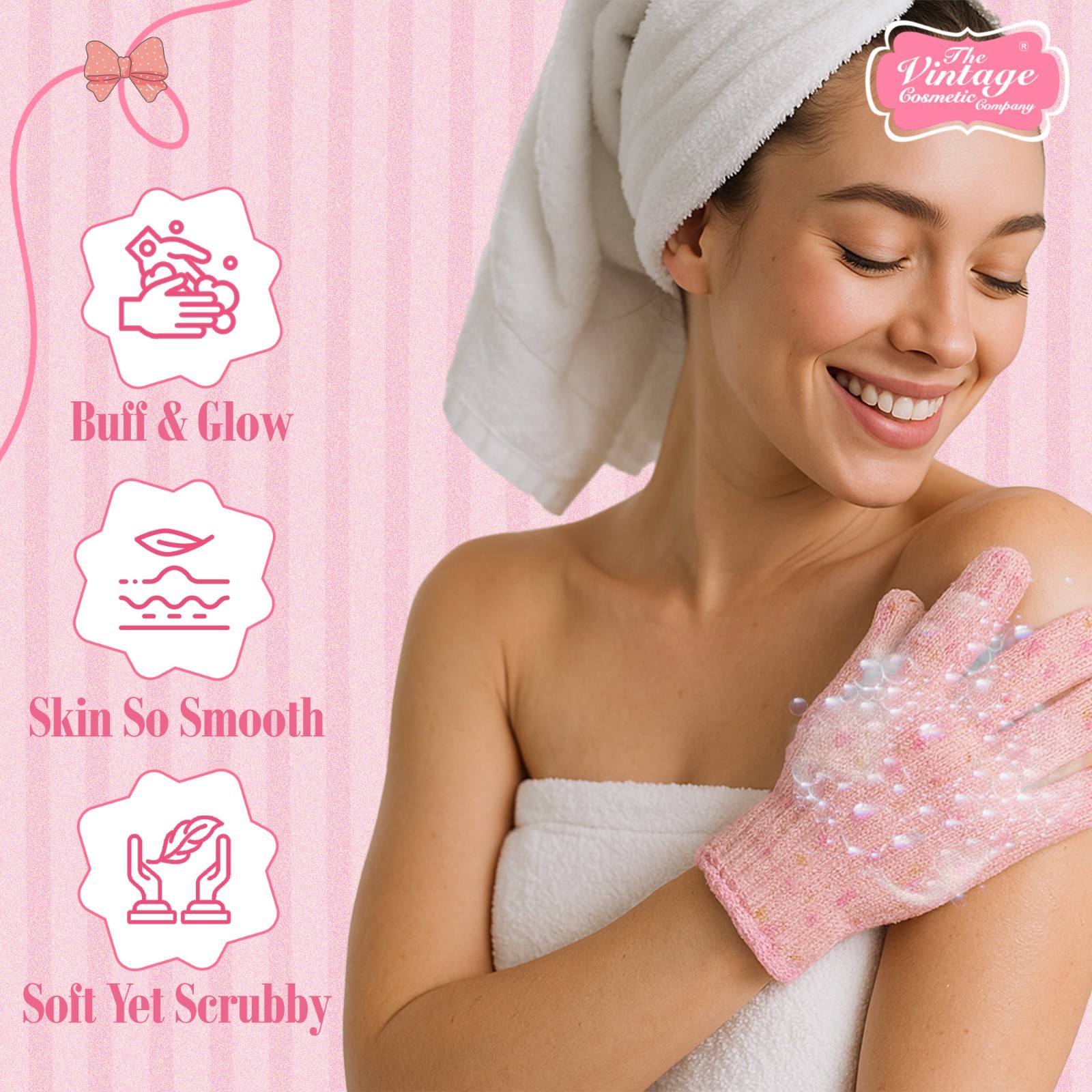 The Vintage Cosmetic Company Rose Print & Pink Exfoliating Gloves Duo