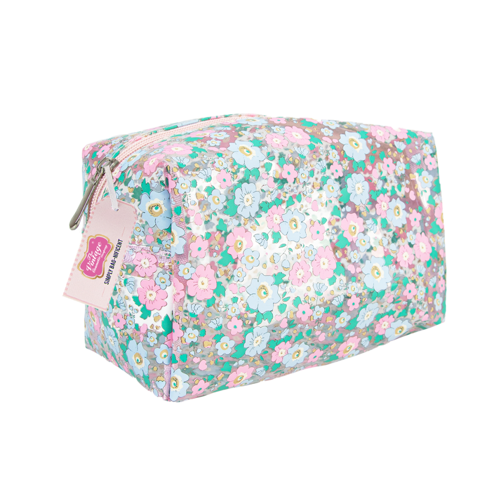 The Vintage Cosmetic Company Make-Up Bag Fresh & Light Cosmetic Storage Bag, Periwinkle Floral Design