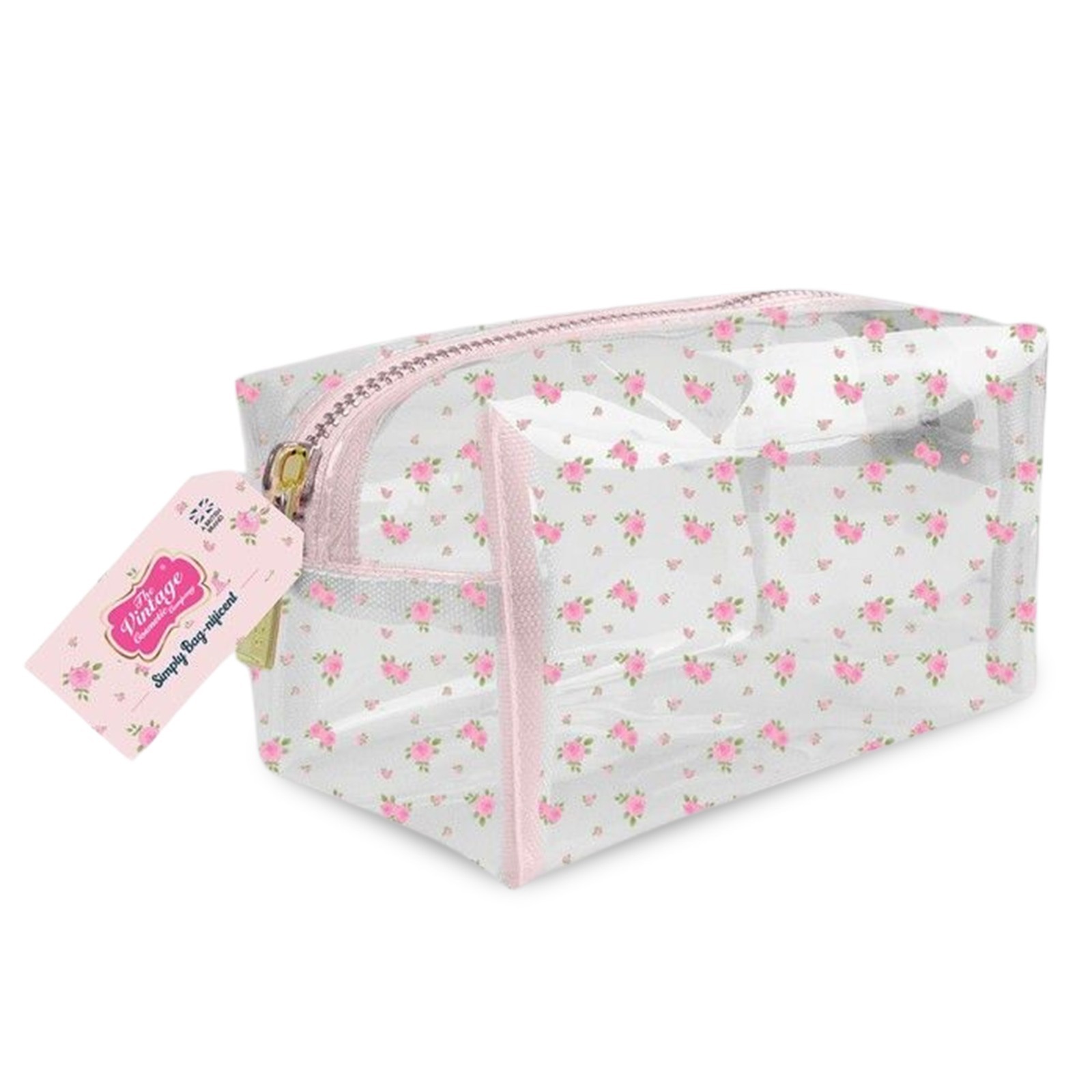 Vintage Rose Transparent Make-Up Bag, Clear Toiletry and Cosmetic Case for Women, Travel and Daily Use