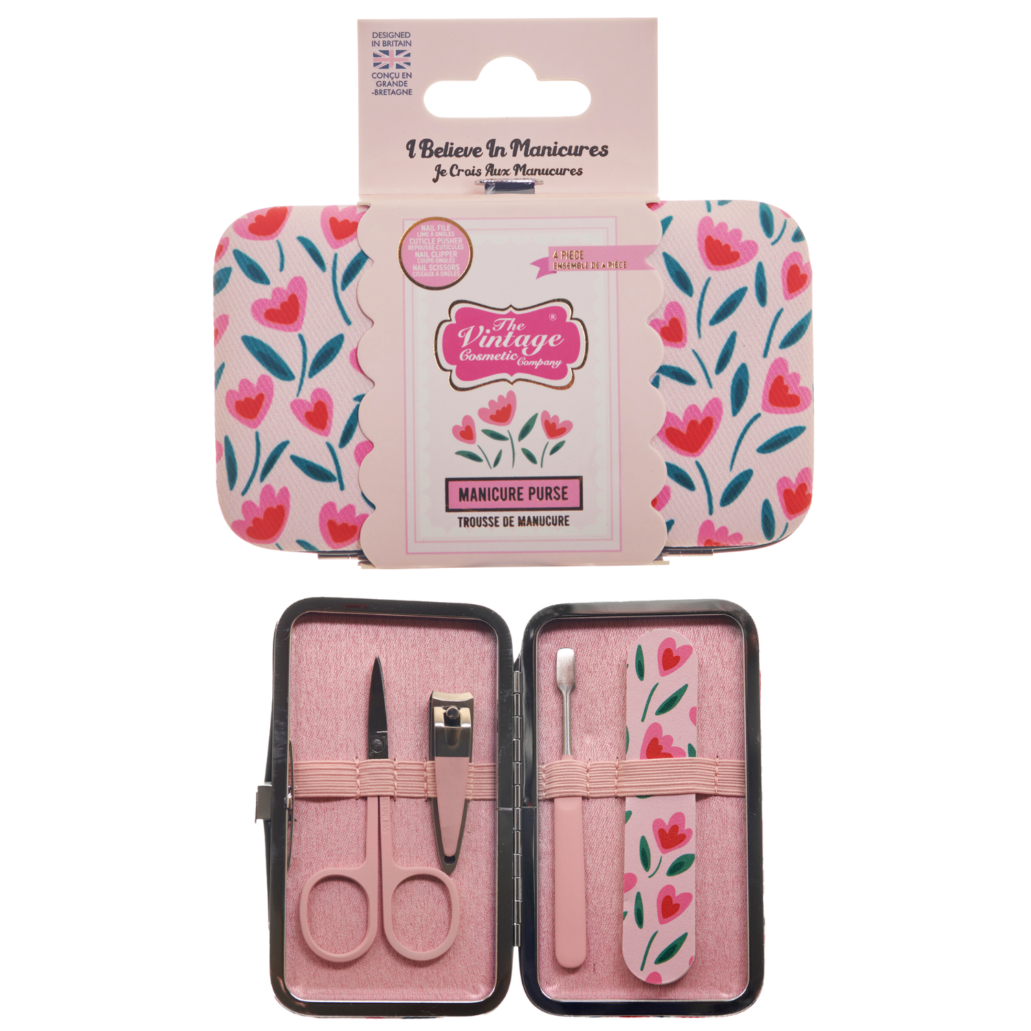 The Vintage Cosmetic Company 4 Piece Tulip Print Manicure Set