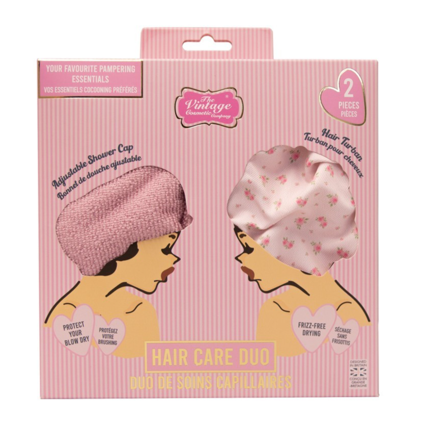 The Vintage Cosmetic Company Hair Care Duo Adjustable Shower Cap & Hair Turban