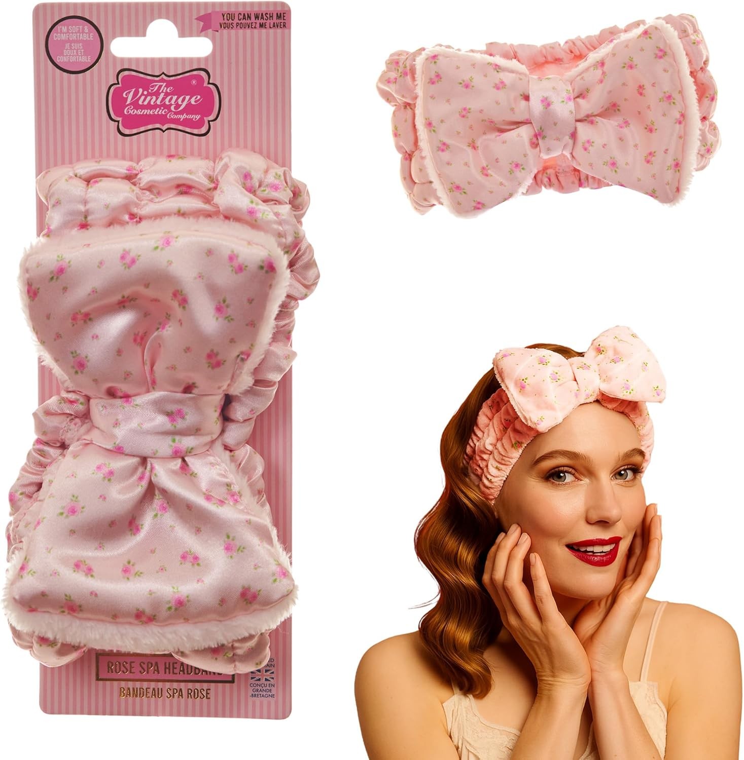 The Vintage Cosmetic Company Rose Spa Headband For Make-Up & Skincare