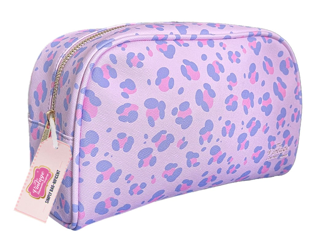 The Vintage Cosmetic Company Lilac Leopard Print Make-Up or Toiletry Bag