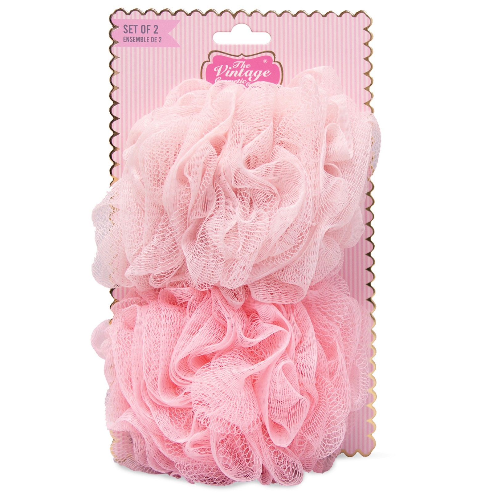 The Vintage Cosmetic Company Set of 2 Pink Shower Pouf Duo