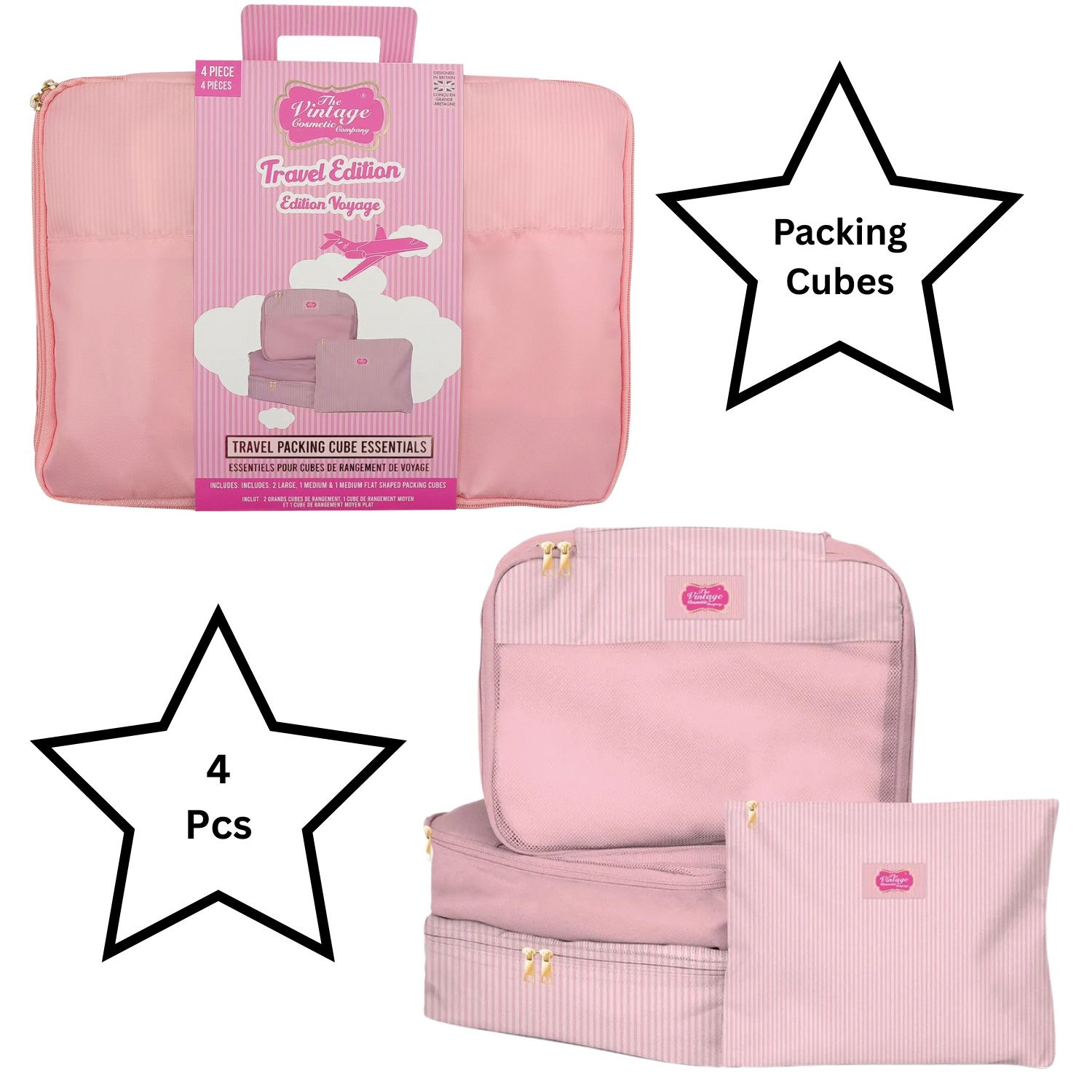 The Vintage Cosmetic Company Travel Edition 4 Pcs Travel Packing Cube Essentials