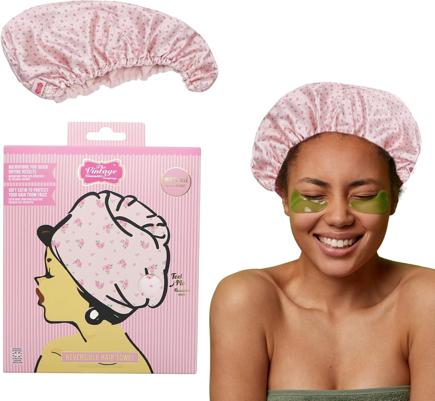 The Vintage Cosmetic Company Rose Dual Hair Towel, Microfiber and Satin Hair Wr