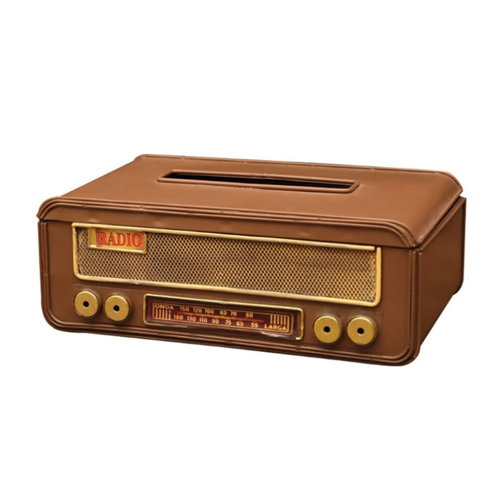 Vintage Radio Style Tissue Box with Magnetic Closure, Retro Iron Holder for Home and Kitchen