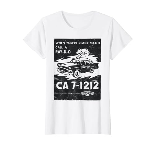 Radio Car/Vintage Taxi/Film Noir Style/Old Hollywood T-Shirt, Women, White, Medium