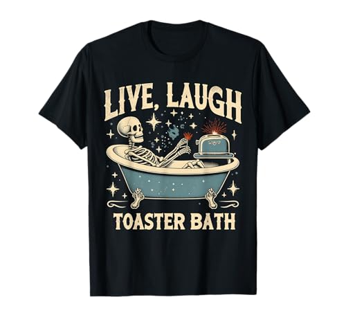 Vintage Live Laugh Toaster Bath Gifts Tee Co Unisex Adult Skeleton Bathroom Humorous Design T-Shirt Black S