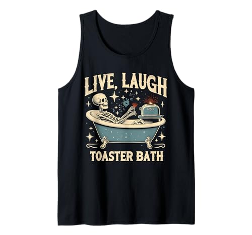Vintage Skeleton Live Laugh Toaster Bath Funny Saying Tank Top