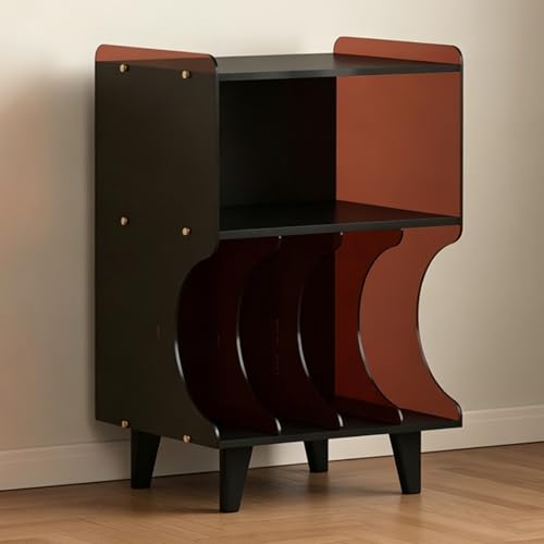 EKDJSN Record Player Stand Table Cabinet Wood Acrylic CD Holder, Media Video Component Cabinet Desk Rack Retro Small Vinyl Record Holder, Vinyl Video Media Table(Black+Brown)