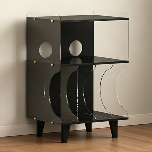 LYXWGRZD Record Player Stand Wood Acrylic CD Holder Desk Rack Retro Small Vinyl Record Holder, Storage Cabinet and Organizer Vinyl Video Media Table(Black)