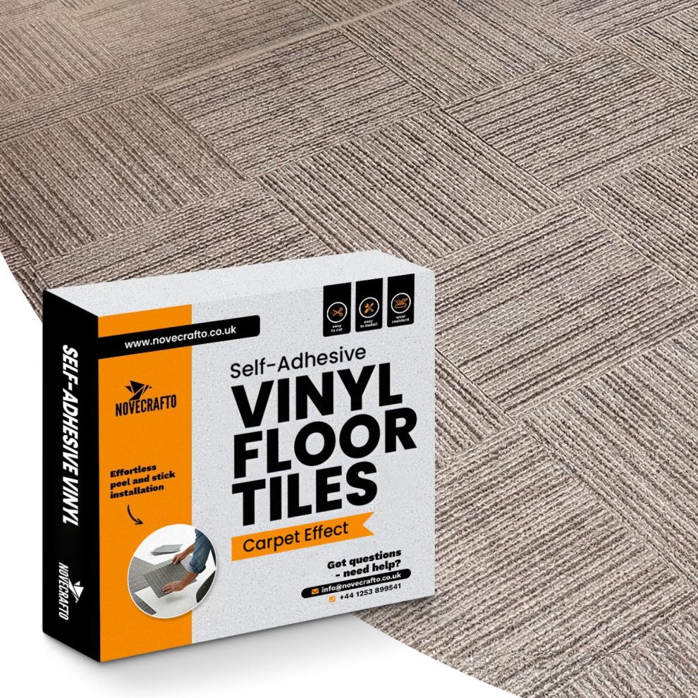 NOVECRAFTO Vinyl Floor Tiles Self-Adhesive – 60 Pack, 30 x 30cm (5.57m² Coverage) Carpet Effect Peel & Stick Floor Tiles – Easy to Clean Durable Vinyl Flooring for Kitchen, Living Room & Office (Grey)