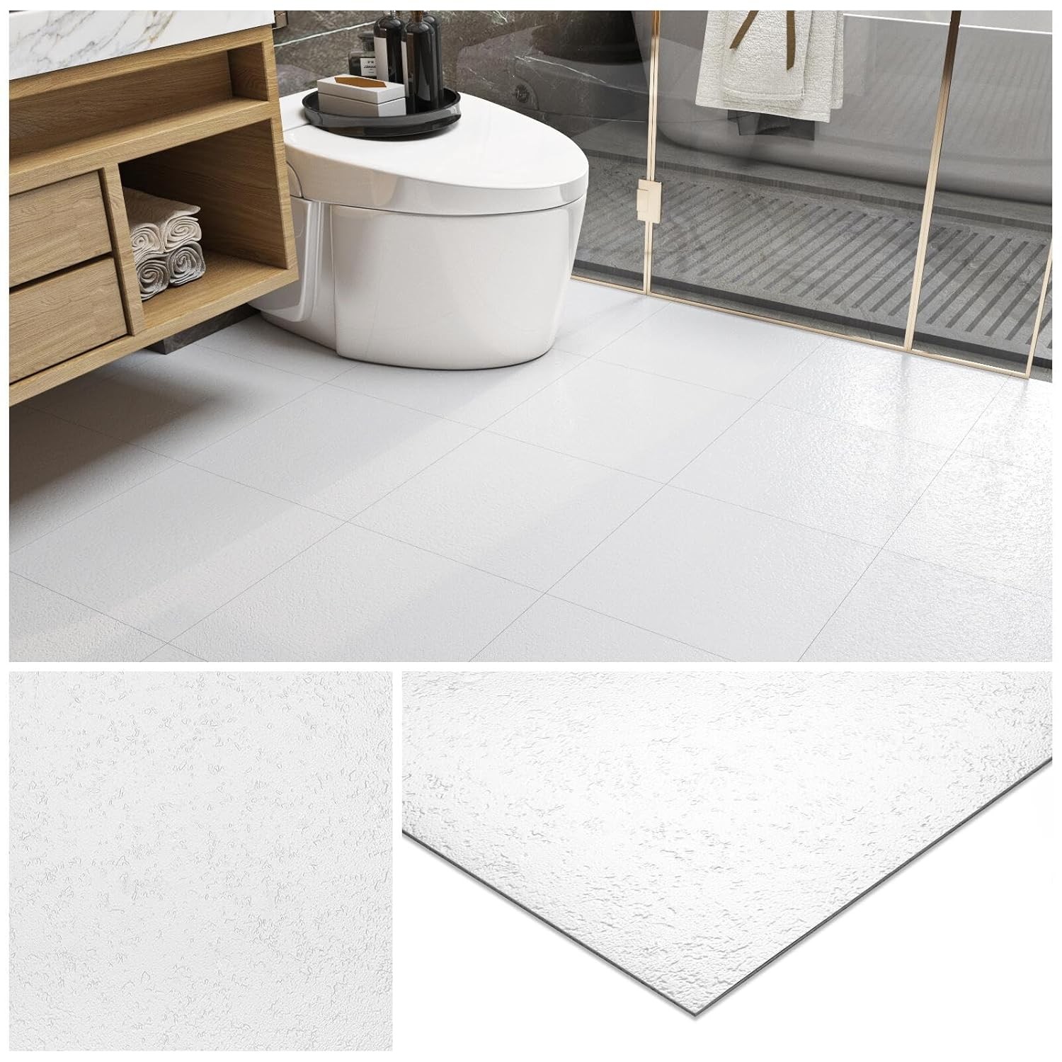 Livelynine Self Adhesive Floor Tile White Vinyl Floor Tiles Self Adhesive 30x30
