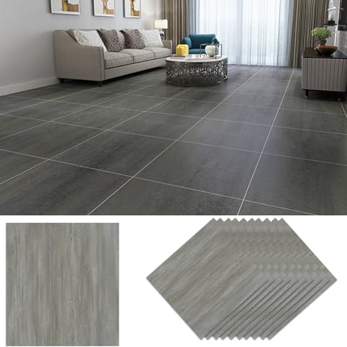 AHAQU 40PCS Floor Tiles Self Adhesive, Covers 38.7 ft²/3.6 m², 30x30cm/11.8x11.8in Vinyl Floor Tiles, Waterproof Peel and Stick Floor Tiles for Bathroom, Kitchen, Bedroom, Living Room- Grey