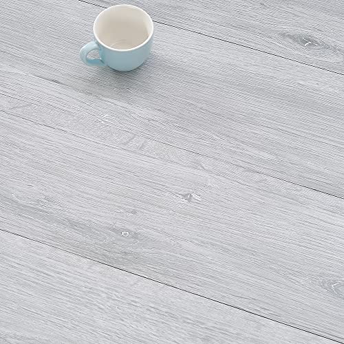 VEVOR Self Adhesive Vinyl Floor Tiles 390 x 23.6 inch, 1.5mm Thick Peel & Stick, Light Gray Wood Grain DIY Flooring for Kitchen, Dining Room, Bedrooms & Bathrooms, Easy for Home Decor