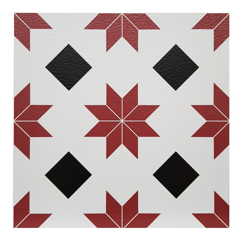 FloorPops orion pack of 10 peel & stick vinyl floor tiles red white black