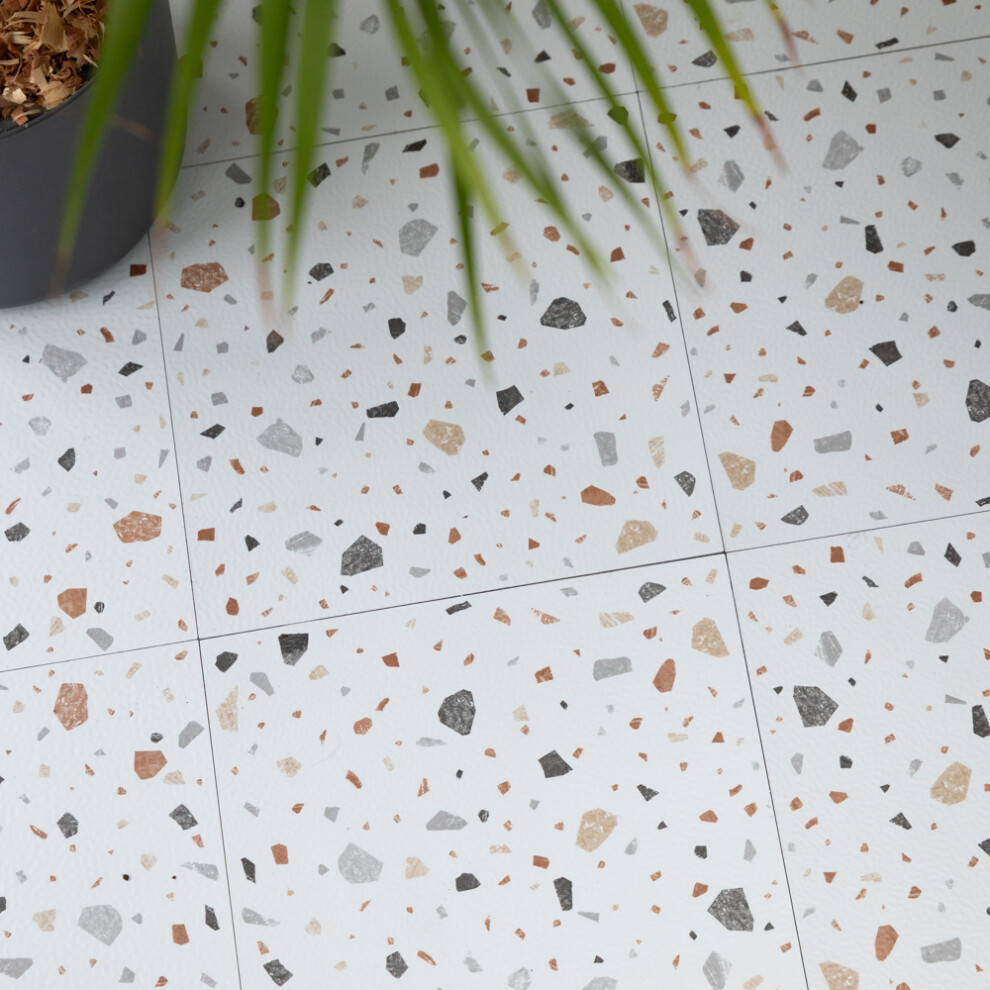TERRAZZO WHITE peel and stick vinyl floor tiles
