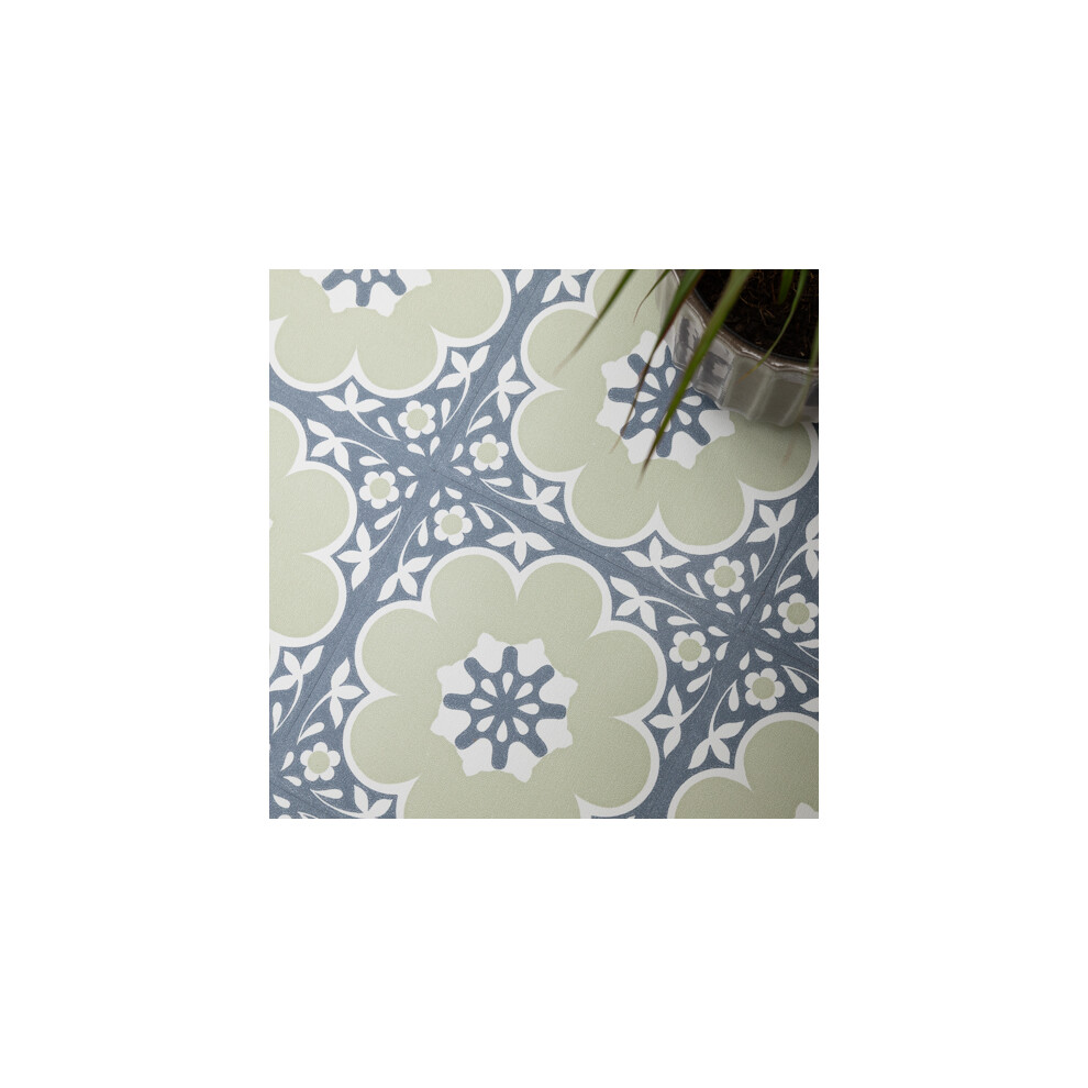 DAPHNE SAGE GREEN peel and stick vinyl floor tiles
