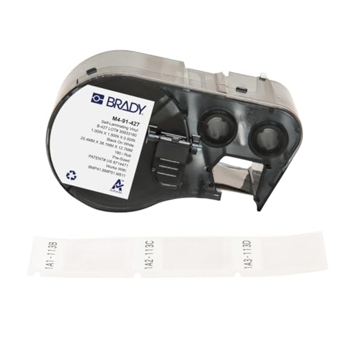 Brady Self-Laminating Vinyl Pre-Sized Labels for Label Printer BMP41/BMP51/BMP53/M511-180 Self Adhesive Printer Labels - Black on White, Transparent (25,40 mm (W) x 38,10 mm (H)) - M4-91-427