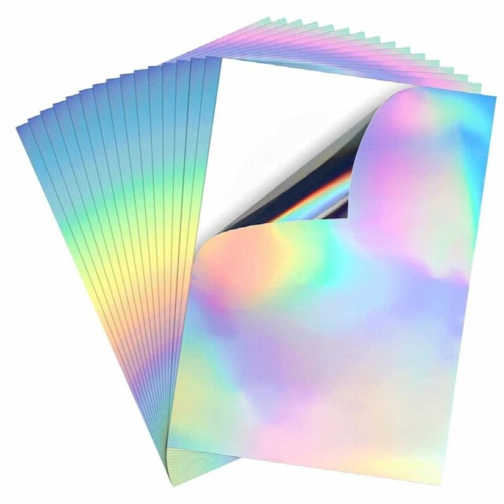 Sticker and Paper for Printer A4 ADERTOS 24 Sheets Holographic Vinyl Self-Adhesive Waterproof Sticky Label Overlay Lamination Film for Inkjet Laser Printer