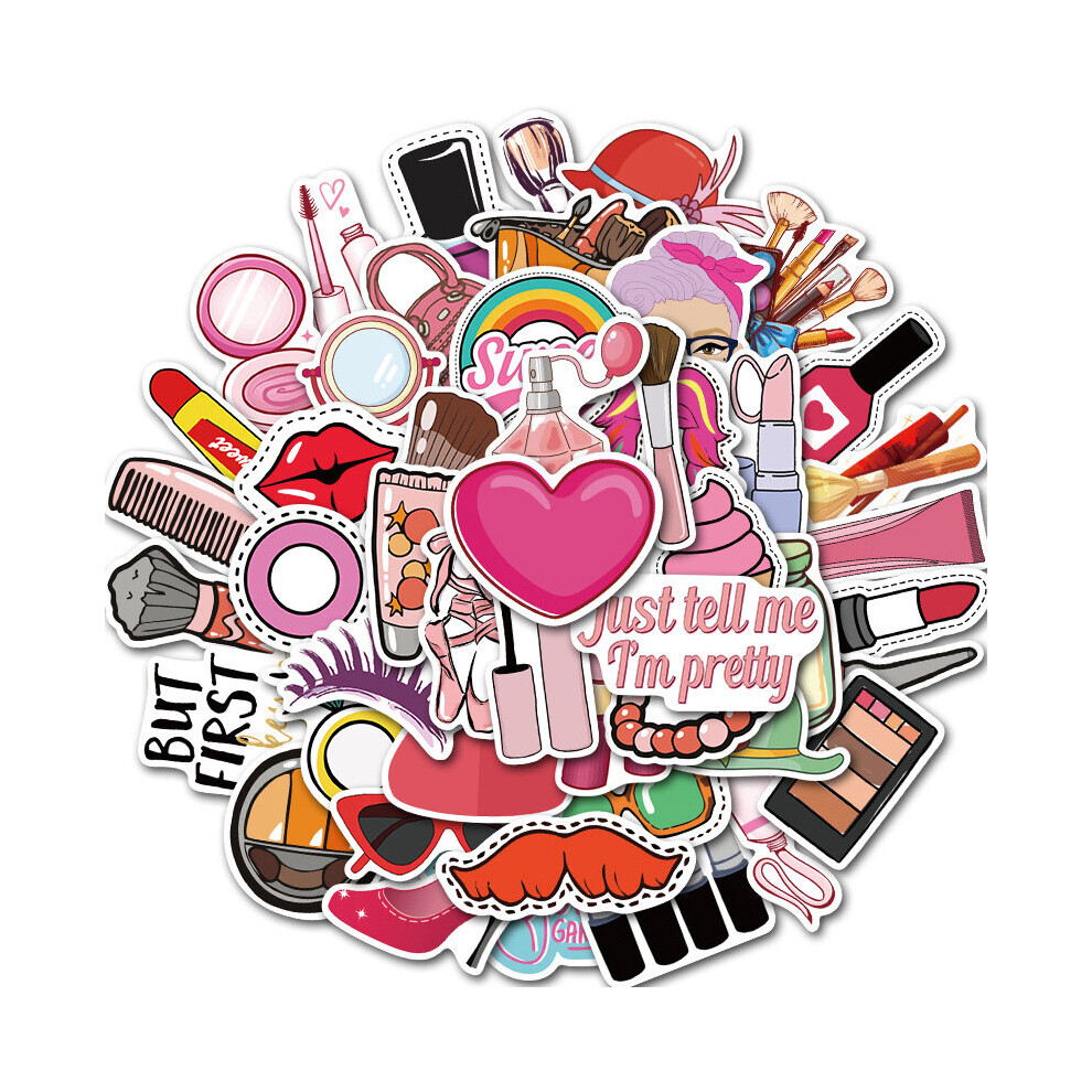 Mixed Colorful Funny Makeup Sticker Stickers for Party Vinyl Waterproof Lipstick Cosmetic for Water Bottle,Laptop,Envelopes,Scrapbooking50 Pcs