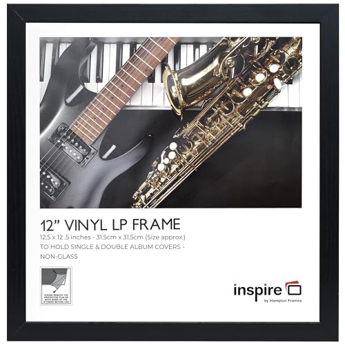 inspire by Hampton Frames | LP Album Display Frame OXFLPNGX-1PK | 31.5x31.5cm, Black, MDF, Acrylic Front | Wall Mount, Drop-In Back, Hanging Loops | Vinyl Record Storage, Album Art Display