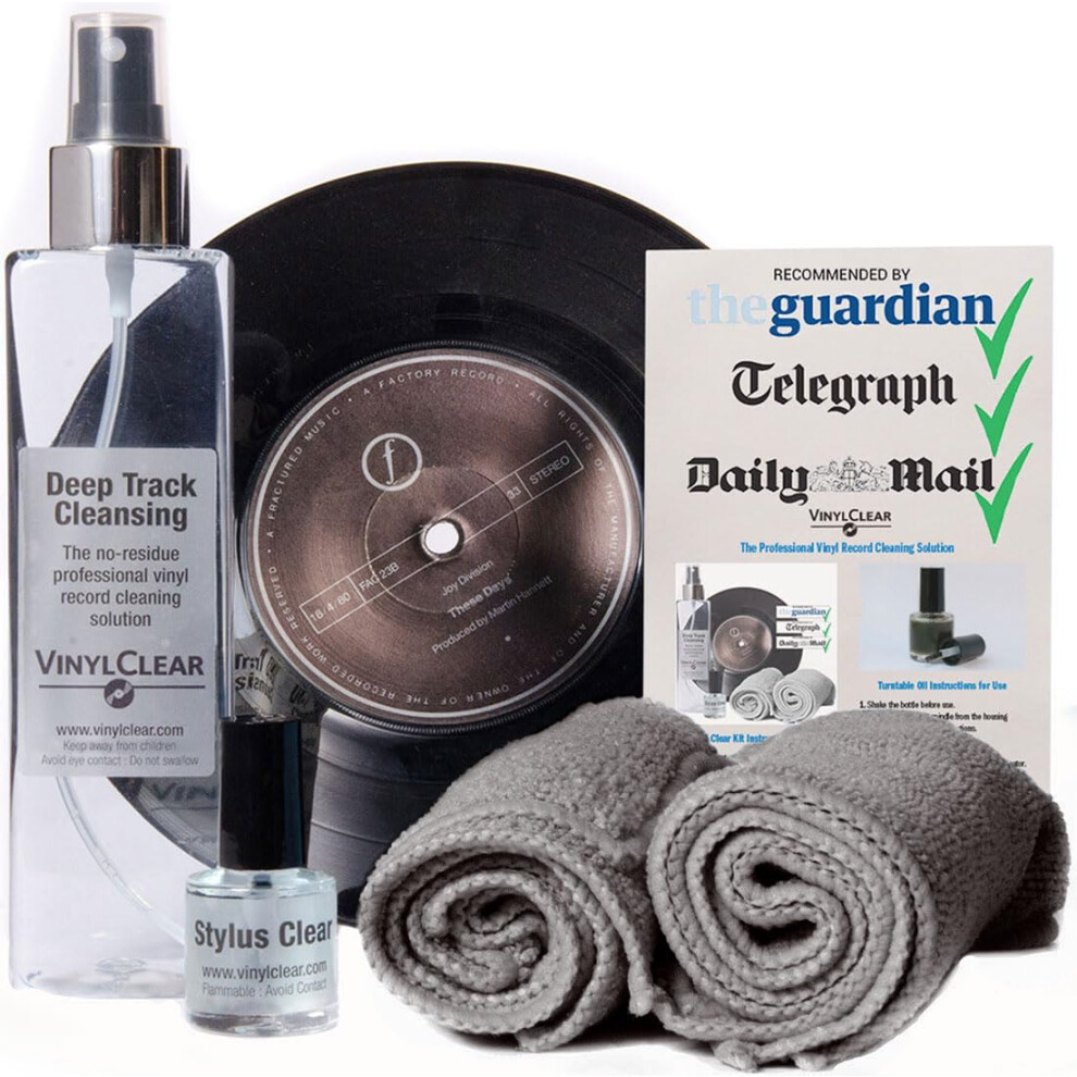 Professional LP Record Cleaner Solution : Vinyl Record Cleaning Kit (250ml), Stylus Brush, Drying Stand, plus Two Microfibre Cloths. Enjoy Click Free