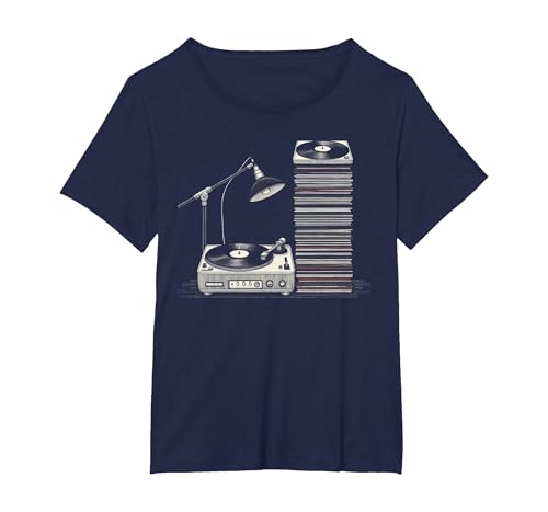 Retro Vinyl Records Player Lover Music Vintage Vinyl Record T-Shirt, Women's Plus, Navy Blue, 3X