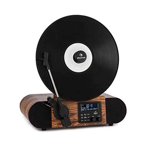 Auna Vinyl Record Player, Vinyl Records CD & USB Turntable Record Players for Vinyl with Speakers, Home Audio Record Players, Retro Vintage Bluetooth, Speakers Stereo Systems, DAB+, FM radio