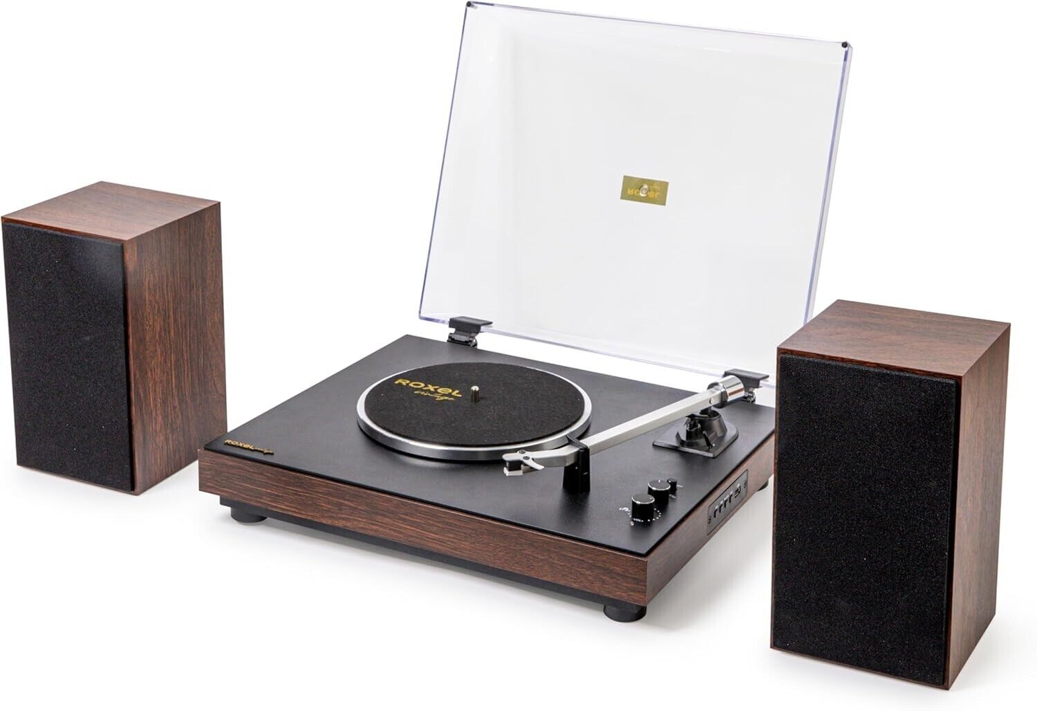 Roxel VRP-120 Turntable with Bookshelf Speakers Vinyl Record Player with 3 Speed