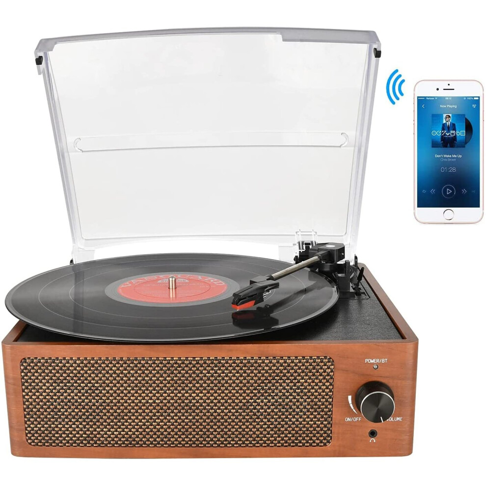 (Brown) Vinyl Record Player Bluetooth Belt Drive 3 Speed Turntable, Vintage Nostalgia Record Player with Built-in Stereo Speakers
