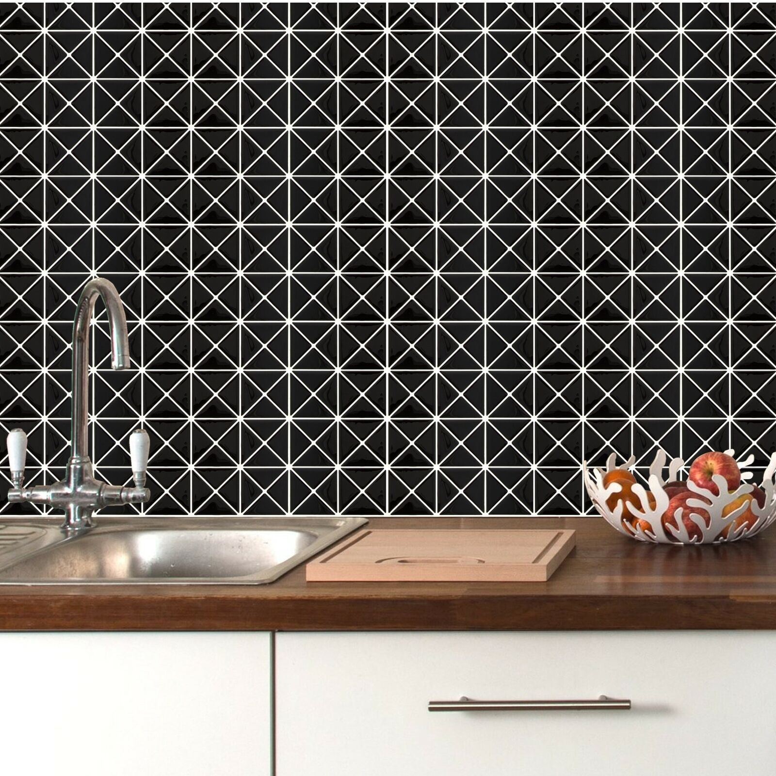 8x VINYL WALL TILES Modern Black Chic Kitchen Bathroom Decorative Feature Mosaic